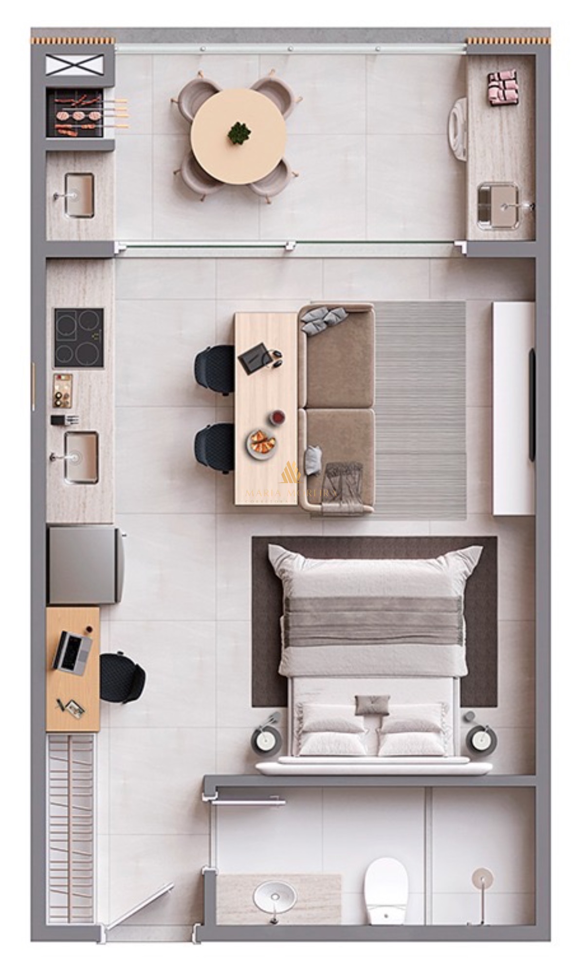 1 Dormitório(s)     1 Suite(s)     1 Banheiro(s)     Acomoda 2 Pessoa(s)     1 Vaga(s) na Garagem     Área Útil 38 m²     Área Total 38 m²     Condomínio: R$01/Mês      IPTU: R$01     Financiamento Bancário